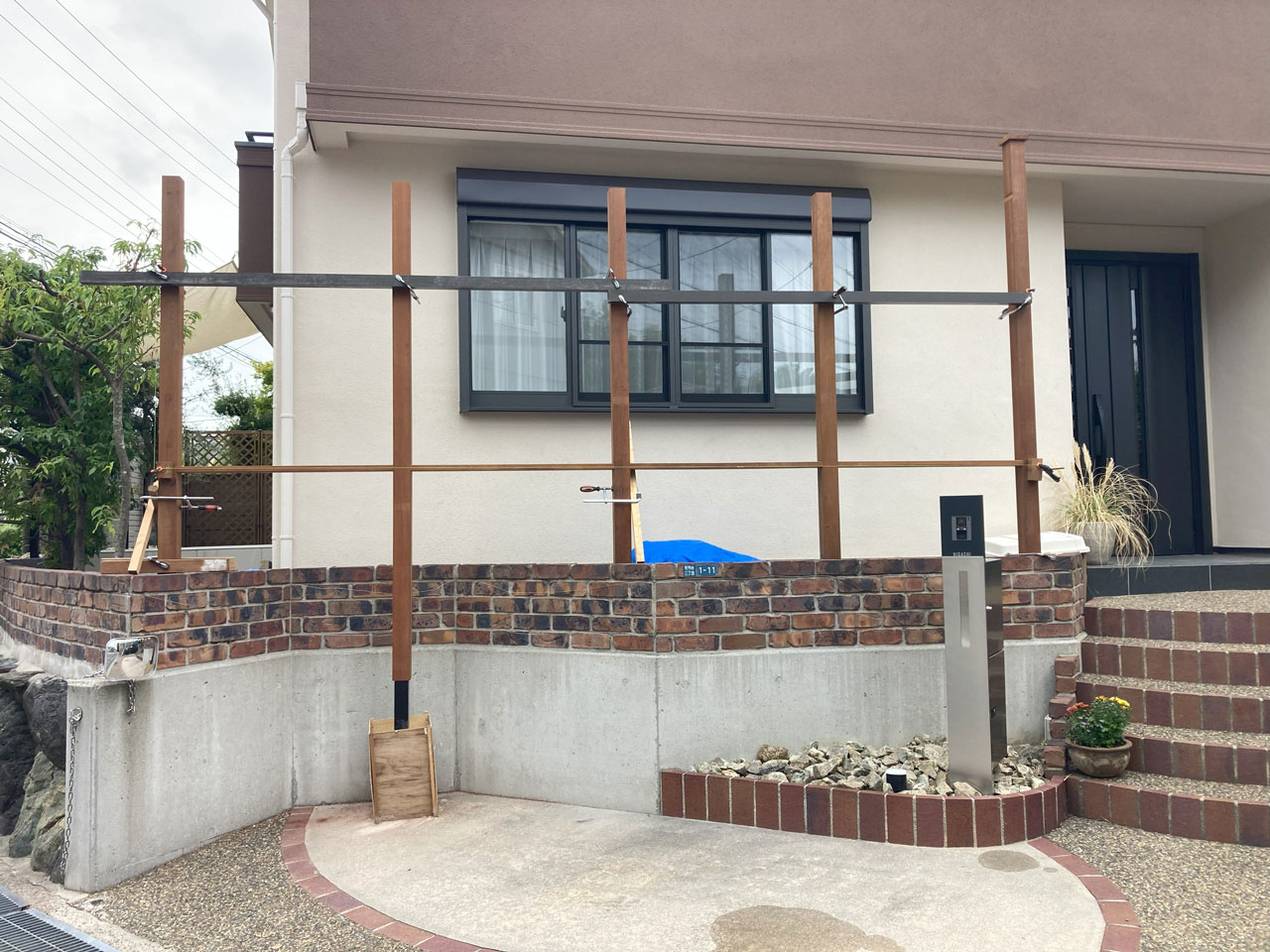 フェンスと花壇の工事